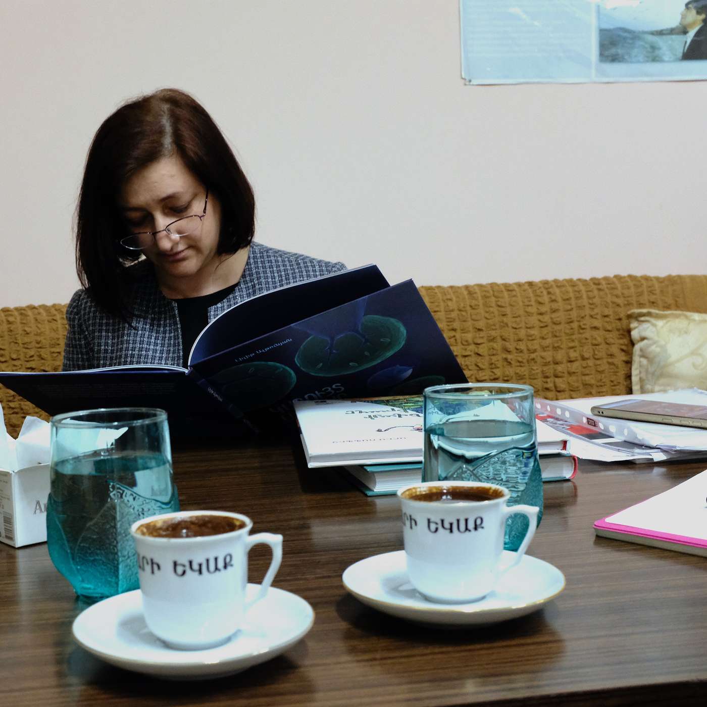 There are posters of the Armenian alphabet, the cook is preparing spas and grechka for lunch. You can even hear the kids singing. The school serves kids from kindergarten to 9th grade. When we meet the principal Heriknaz Avagyan, we of course get offered coffee.